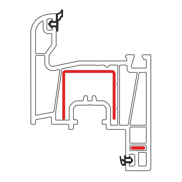 این پروفیل برای قسمت بازشو پنجره به کار میرود و قابلیت استفاده در بالاترین استانداردهای اروپایی را دارد. در محل اتصال پروفیل و شیشه دو نوع نوار آببندی وجود دارد. ضمنا این پروفیل را میتوان به پروفیل متحرک وسط نیز متصل کرد.