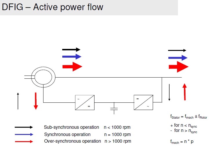 این توربین ها بر خلاف توربین های سرعت ثابت می تواند بر اساس تکنولوژی DFIG و با استفاده از مبدلهای الکترونیک قدرت Back to Back، در بازه وسیع تری از سرعت باد قابلیت تولید توان داشته باشد.