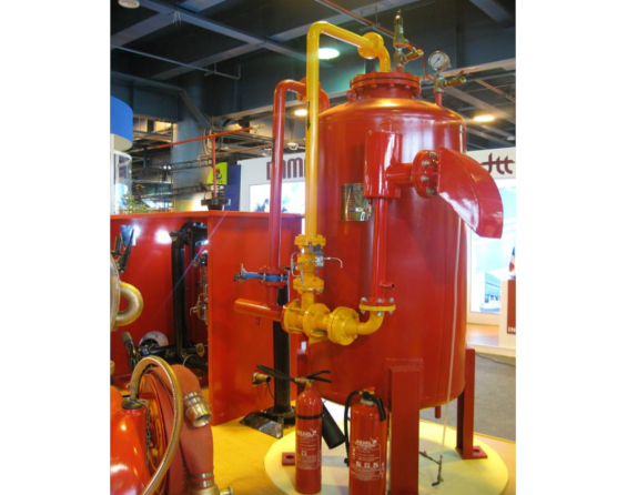 این سیستم از یک مخزن تحت فشار استوانه ای کربن استیل، بهمراه یک Bladder داخلی از جنس پلیمر الاستومری قابل انعطاف که فوم غلیظ را همانند در خود نگه می دارد، تشکیل شده است.