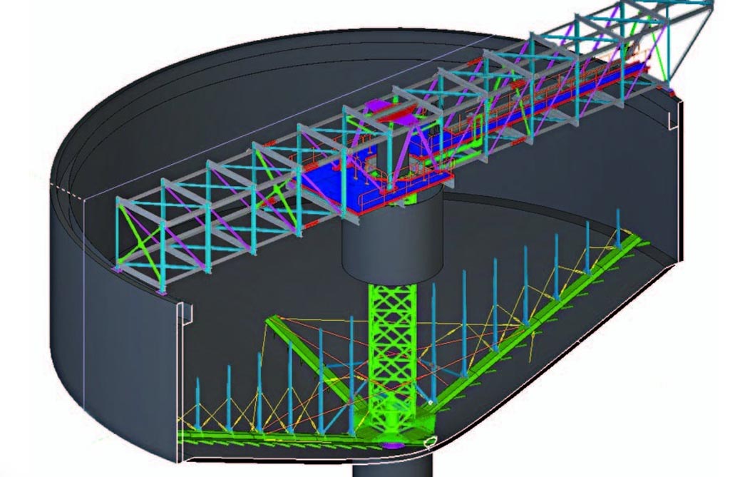 یک سیستم جهت جمع آوری مایع شفاف سرریز و یک سیستم انتقال دهنده جهت جمع آوری و انتقال جامد ته ریز تیکنر