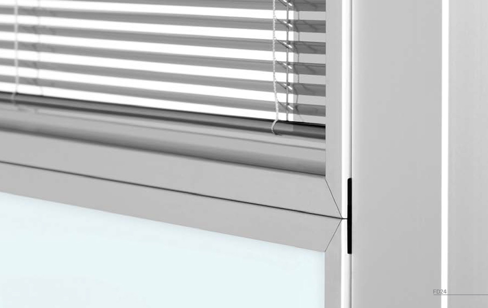 داخل مدول هاي شيشه اي پارتيشن دو جداره قابليت نصب پرده کرکره به ضخامت هاي 16 ، 25 و 50 ميلي متري با هر رنگي (به انتخاب کارفرما) و همراه تجهيزات تنظيم آن به وسيله ولوم وجود دارد.