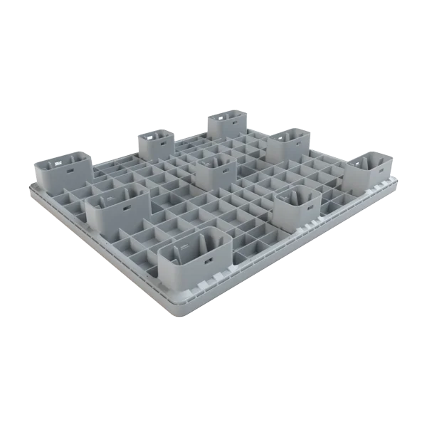 استاندارد پالت نه پایه یک تکه و سطح روی پالت صاف و بسته است و قابلیت استفاده از جک دستی از چهار طرف را دارا است.