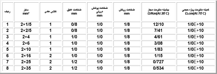 کابل های دو رشته (هادی گروه 1 و 2) با عایق PVC برای ولتاژ 600/1000 ولت مطابق استاندارد ملی ایران
