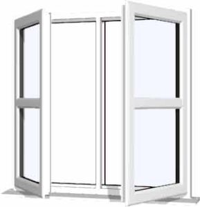 این مدل پنجره دارای دو بازشو می باشد که ستون میانی در آن وجود ندارد.