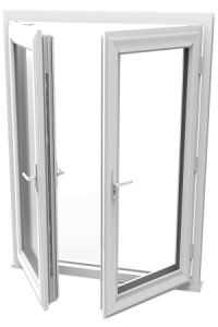 پنجره UPVC دولنگه بازشو، دولنگه بازشو با لولاهای ثابت است که هرلنگه آن به طور جداگانه باز و بسته می شود به اینصورت که دولنگه ی بازشو کنار هم قرار می گیرند و از وسط باز می شود.