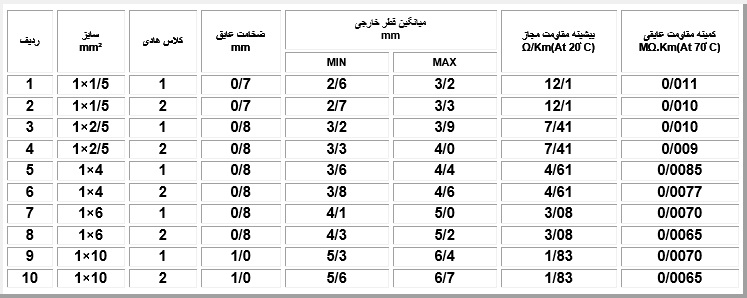 کاربرد : در محل های خشک برای سیم کشی داخلی و فرمان های الکتریکی . استفاده به طور مستقیم در زیر دیوار مجاز نیست .